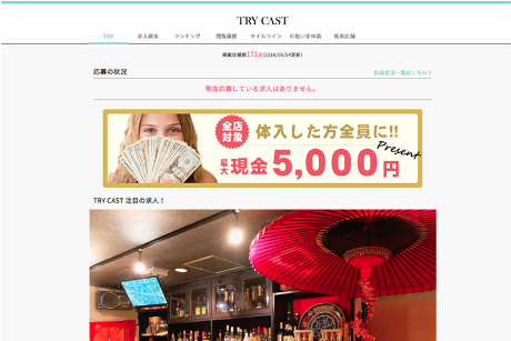 TRY CASTは成果報酬型のナイトワーク求人サイト。