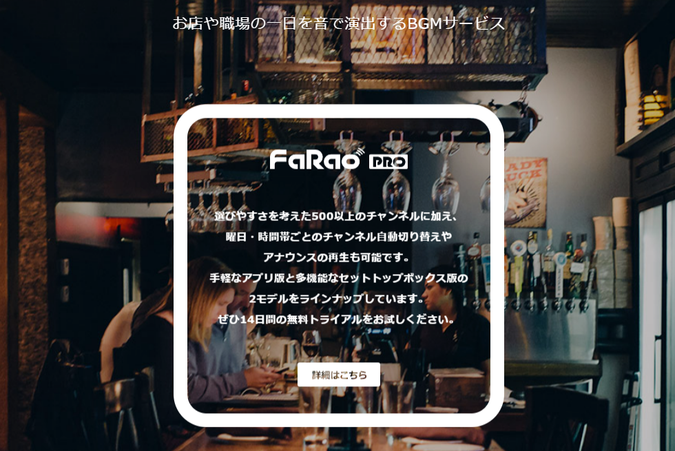 調理・会計・サーブと、とにかく忙しい一人での飲食店運営において、FaRao PROをBGMに選んでいただいた理由は「工事不要で設置できたのと、お店のコンセプトにあったチャンネルを、アプリの画面から簡単に選べること。