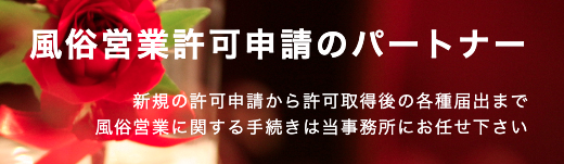 風俗営業(第1号営業)許可申請手続きの専門事務所です。