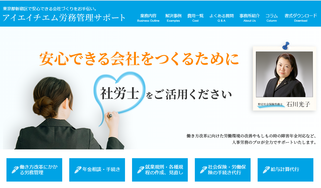 社会保険労務士法人 アイエイチエム労務管理サポートは、東京都新宿区の社会保険労務士事務所です。