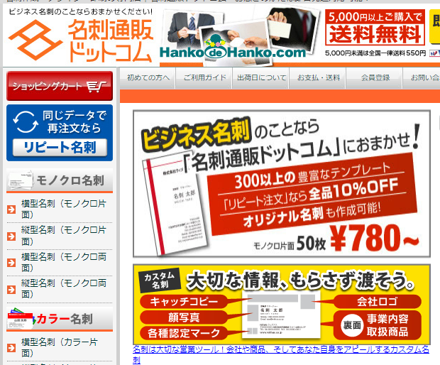 ※データ入稿によるオリジナル名刺の注文方法は上記と異なりますので「データ入稿について」のページの説明手順にそって、ご注文下さい。