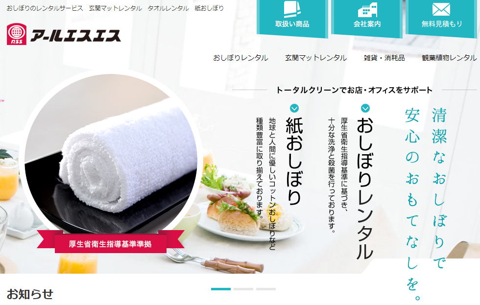 おしぼりのレンタルサービス 玄関マットレンタル タオルレンタル 紙おしぼり株式会社アールエスエス